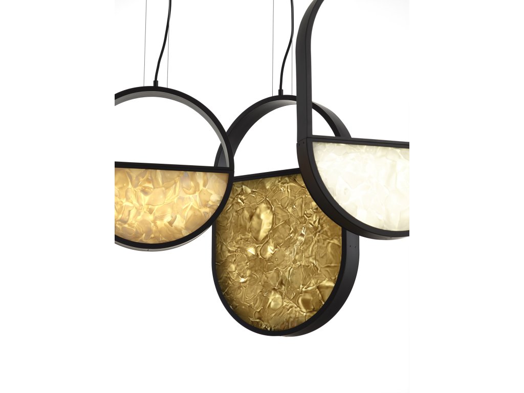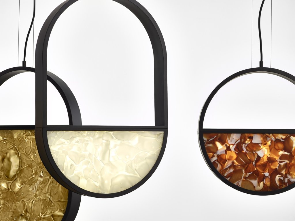 Kolekce GEOMETRIC zdůrazňuje estetický výraz a strukturu BROKISGLASS, která je sama o sobě pozoruhodně výrazná. Kolekce je definována základními geometrickými tvary, které charakterizují celkové kontury světel a vtlačují je do jedinečného grafického prvku, aby bylo dosaženo výrazného kontrastu s živým, téměř sochařským provedením skla.
