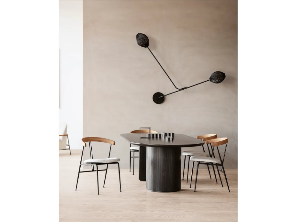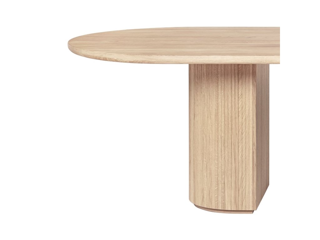 - Dýhovaná dubová deska, základna ve tvaru půlměsíce v různých povrchových úpravách, k dispozici také v provedení masivní dub