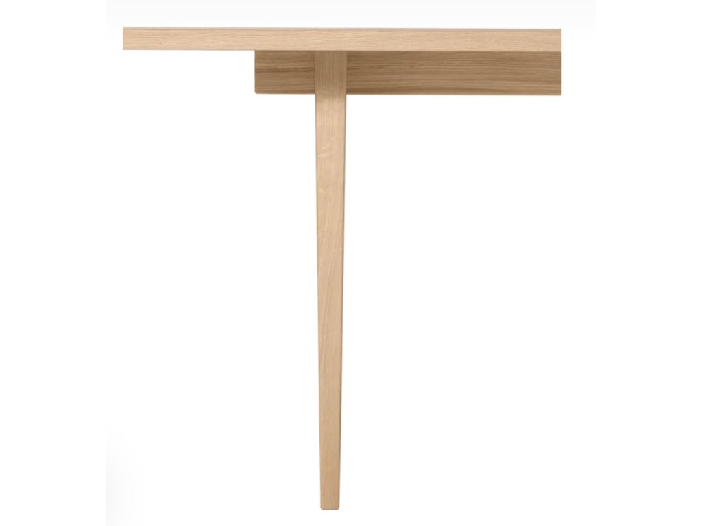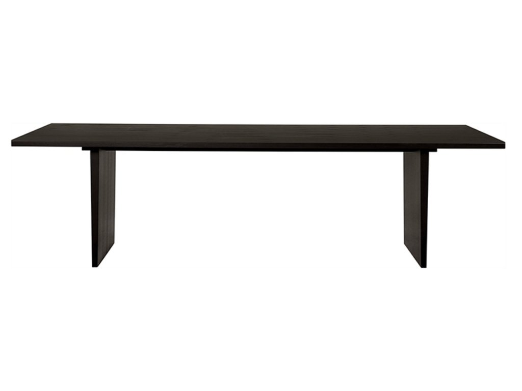 - Dýhované dřevěné desky v provedení světlý mořený dub nebo hnědý a černý mořený jasan jsou spojeny se dvěma zúženými nohami pomocí masivního dřevěného příčníku