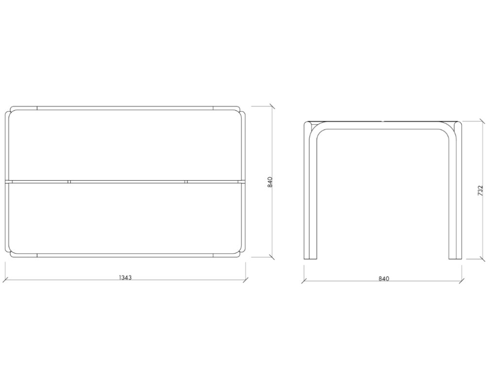 Rozměry: v. 73 cm, š. 135 cm, hl. 84 cm