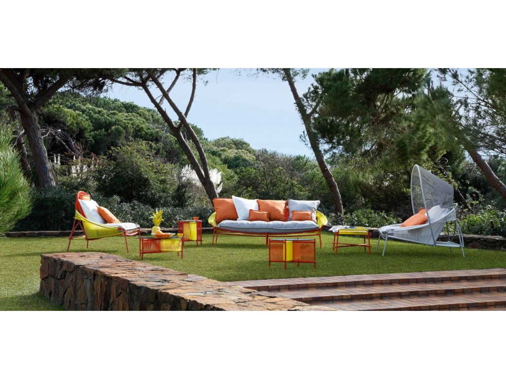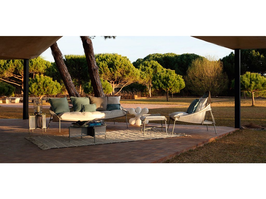 Lavička Traveler, navržená americkým designérem Stephenem Burksem, je kompletní kolekcí pro čtení, stolování a lenošení venku. Kolekce se vyznačuje jemnou konstrukcí z lakovaného hliníku, omotanou barevnými provázky.