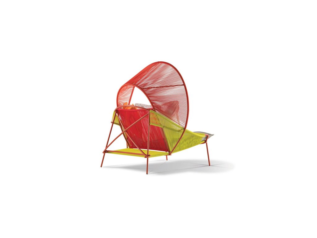 Outdoorové křeslo Traveler, které navrhl designér Stephen Burks, je unikátním spojením precizního designu a řemeslné zručnosti. Toto křeslo s výraznou konstrukcí a stříškou (hood) nabízí intimní prostor pro relaxaci pod širým nebem a stává se okamžitým designovým středobodem jakékoli terasy či zahrady. Kolekce Traveler je oslavou interkulturního designu, který propojuje moderní technologie s tradičními technikami ručního vyplétání.