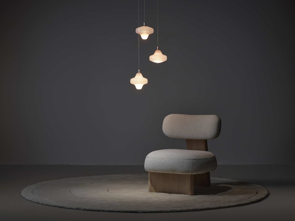 Kolekce závěsných svítidel STARCLOUD se skládá ze 3 objektů Atria, Lyra a Vega z nichž je každý sám sobě uměleckým dílem mezi svými nebeskými společníky. Tyto hvězdy promítají jemně odlišný optický efekt v závislosti na úhlu pohledu, přičemž se zdá, že se různě mění a ubývají nebo se zastavují ve stavu symetrie. Jemná stínidla z ručně vyráběného skla, zavěšená na štíhlých koaxiálních kabelech různých délek, jsou k dispozici ve 3 variantách: neprůhledný opalín, perleťově růžový opalín a perleťově šedý opalín. Kolekce nabízí šest předdefinovaných sad různých velikostí, každou s vlastním stropním baldachýnem, ale neexistuje žádné omezení, jak lze svítidla kombinovat v originálních kompozicích. Starcloud tak poskytuje pozoruhodnou míru variability a vybízí uživatele k vytváření vlastních, zcela jedinečných hvězdných krajin v interiéru.