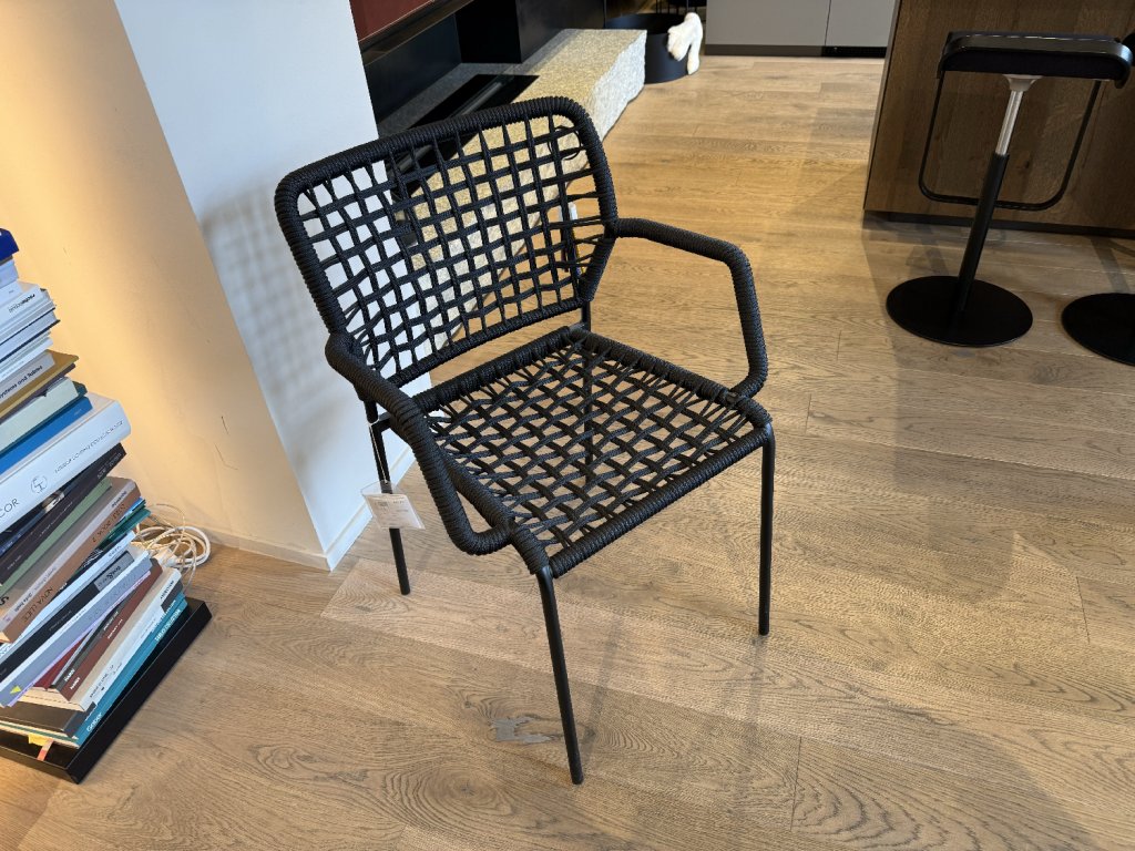 Židle Corda mají rám z trubkové oceli, ohnivzdorný výplet, který je k dispozici v několika barvách. Oba použité materiály jsou velmi odolné a židle tak lze používat uvnitř i venku. Na výběr je také ze dvou možností výpletu. Výška sedu: 45,5 cm.