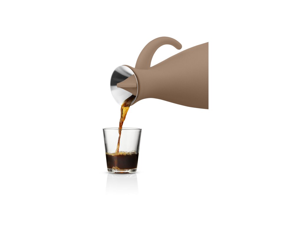 Sochařský design je založen na oceněném konceptu, díky kterému je tato vakuová konvice díky nalévacímu okraji z nerezové oceli 100% bez kapání. Díky širokému otvoru v horní části se vakuová konvice snadno plní a nízké těžiště udržuje konvici stabilně vzpřímenou na stole. Vnější strana z plastu, nalévací chlopeň z nerezové oceli a silikonu a vnitřní skleněná baňka je vyměnitelná.
