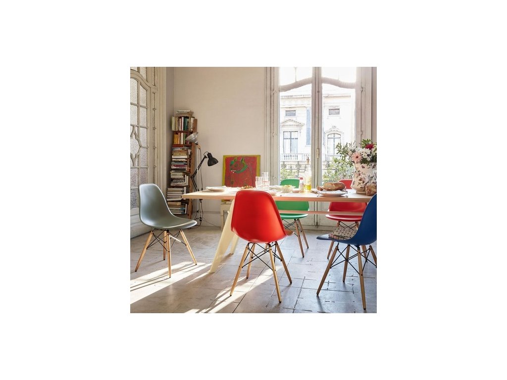Židle Eames Plastic Side Chair DSW patří mezi nejznámější návrhy designérského dua Charles a Ray Eames. Zkratka DSW znamená Dining Height Side Chair Wooden Base – jídelní židle bez područek s dřevěnou podnoží. Tento model byl poprvé uveden na trh v roce 1950 a od té doby se stal nadčasovou ikonou moderního nábytku.